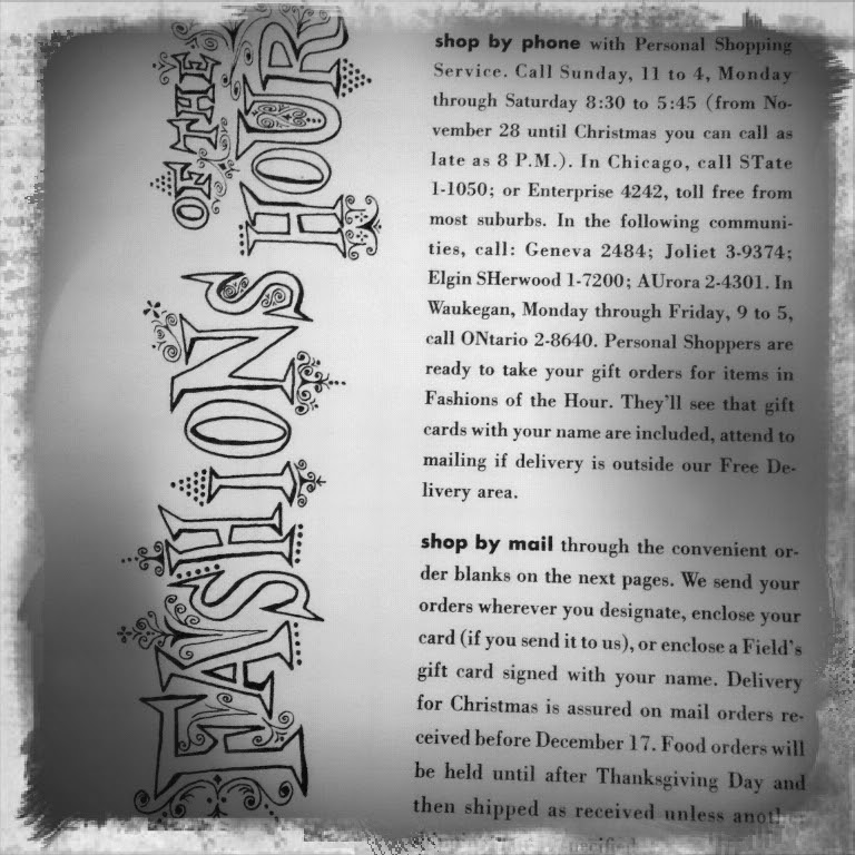 This is a 1958 Marshall Fields catalog. The closing of Marshall Fields is quite sad coming from Chicago; my mom still has trouble going into a Macy's. Even though the store is no longer, I am glad to have a few vintage catalogs that are filled with stunning clothing.